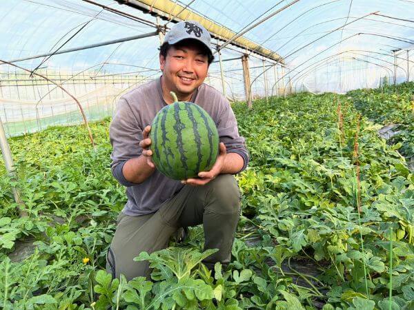 品評会で何度も金賞を受賞した父とそれを受け継ぐ息子の二人三脚で育てたスイカは、完熟収穫にこだわり、甘くてジューシー、シャリ感抜群、そして鮮度と、一度食べたら忘れられない美味しさに虜になる方が沢山いらっしゃいます。