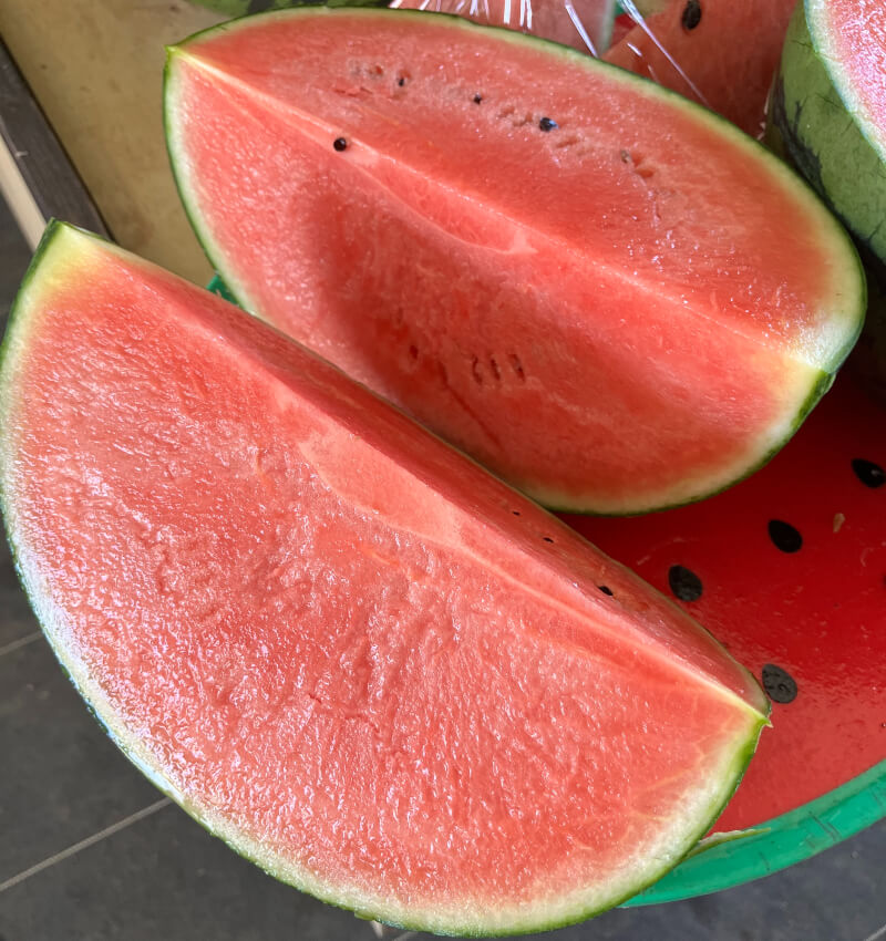 美味しくなかった最初に買った小玉スイカは普通に甘かったが、今回の大玉は全く美味しくない。中身は見た目には熟れているが、味は水っぽくて歯触りも悪く、値段には見合わない商品だった。